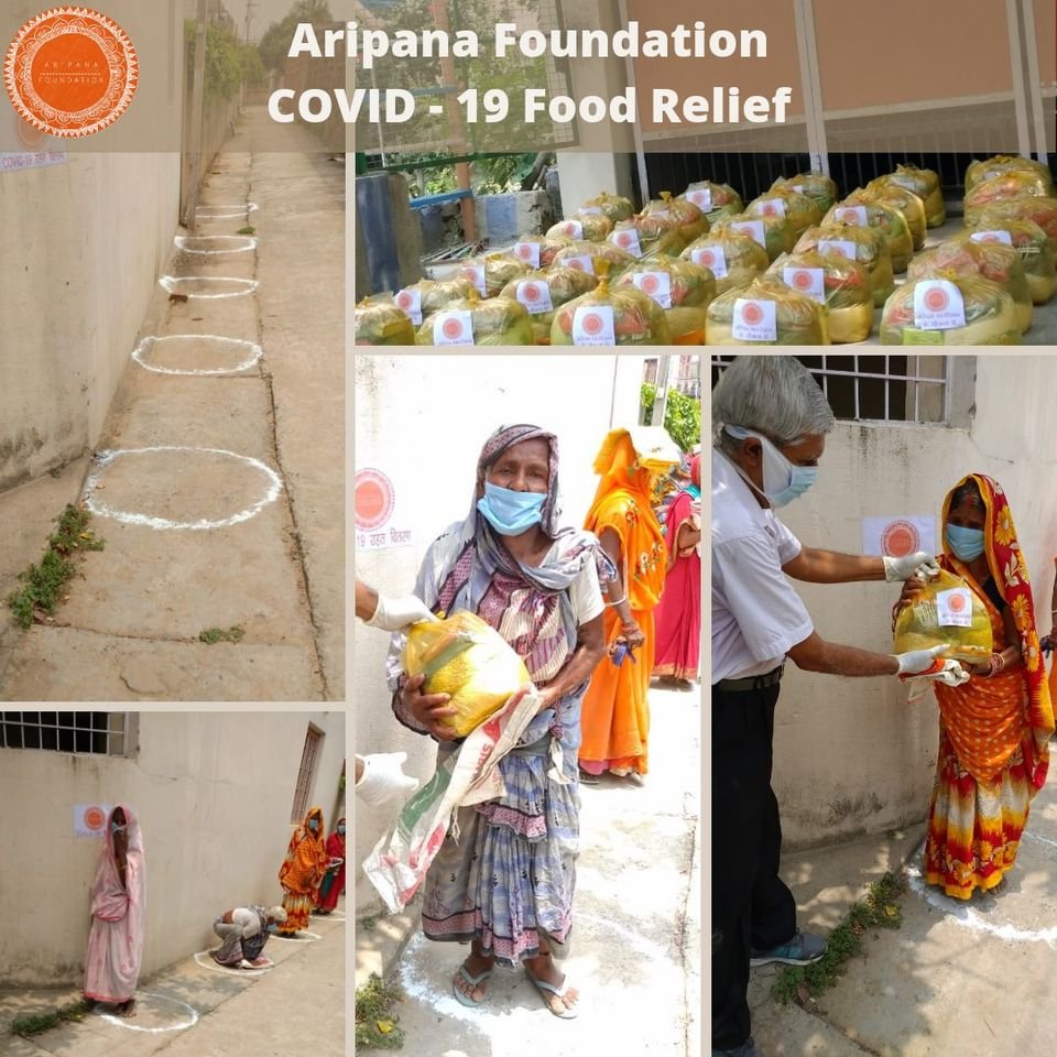 As convinced as all of us were of the importance of distributing food relief, implementing it in the face of this notoriously contagious virus and desperately needy families, required a lot of deliberation and meticulous planning. Social distancing norms had to be followed, safety of our team members and volunteers and people who had come to collect relief material could not be compromised at any point. The Mukhiya, along with team Aripana, had to ensure that the deserving received relief, without giving rise to resentment among other families in the close knit villages. We also used this as an opportunity to raise awareness in the community on safeguards to contain the spread of the virus.